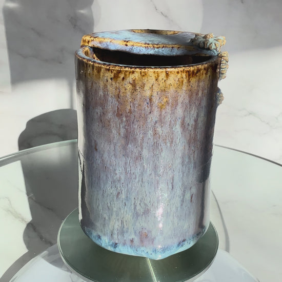 Sip your morning brew from a tumbler as unique as you are! This handmade ceramic beauty features delicate clay flowers cascading down speckled clay walls, crowned with a dreamy light blue glaze that flows like watercolor. Each piece is one-of-a-kind, crafted with care and personality. Perfect for coffee lovers who appreciate artisan charm in every cup.
