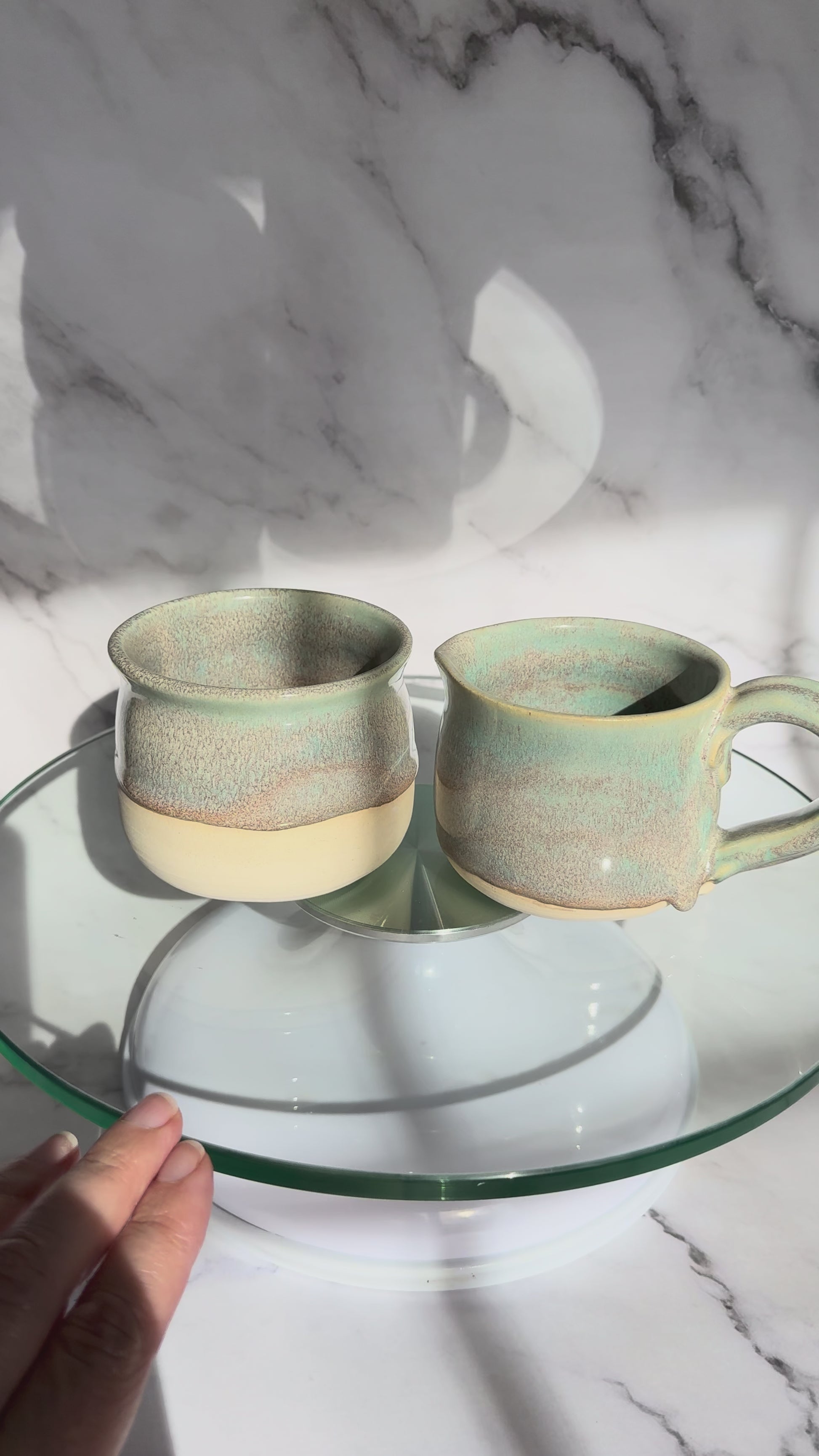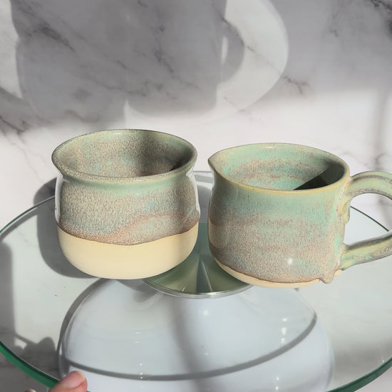Dive into coastal charm with this one-of-a-kind cream and sugar set, hand-painted with whimsical ocean-inspired glazes on pristine white clay. Each piece features unique brushstrokes capturing the essence of sea and shore—no two sets are exactly alike. Perfect for adding a splash of personality to your table, whether you're serving morning coffee or afternoon tea. A delightful conversation starter that brings the calming beauty of the ocean straight to your kitchen.