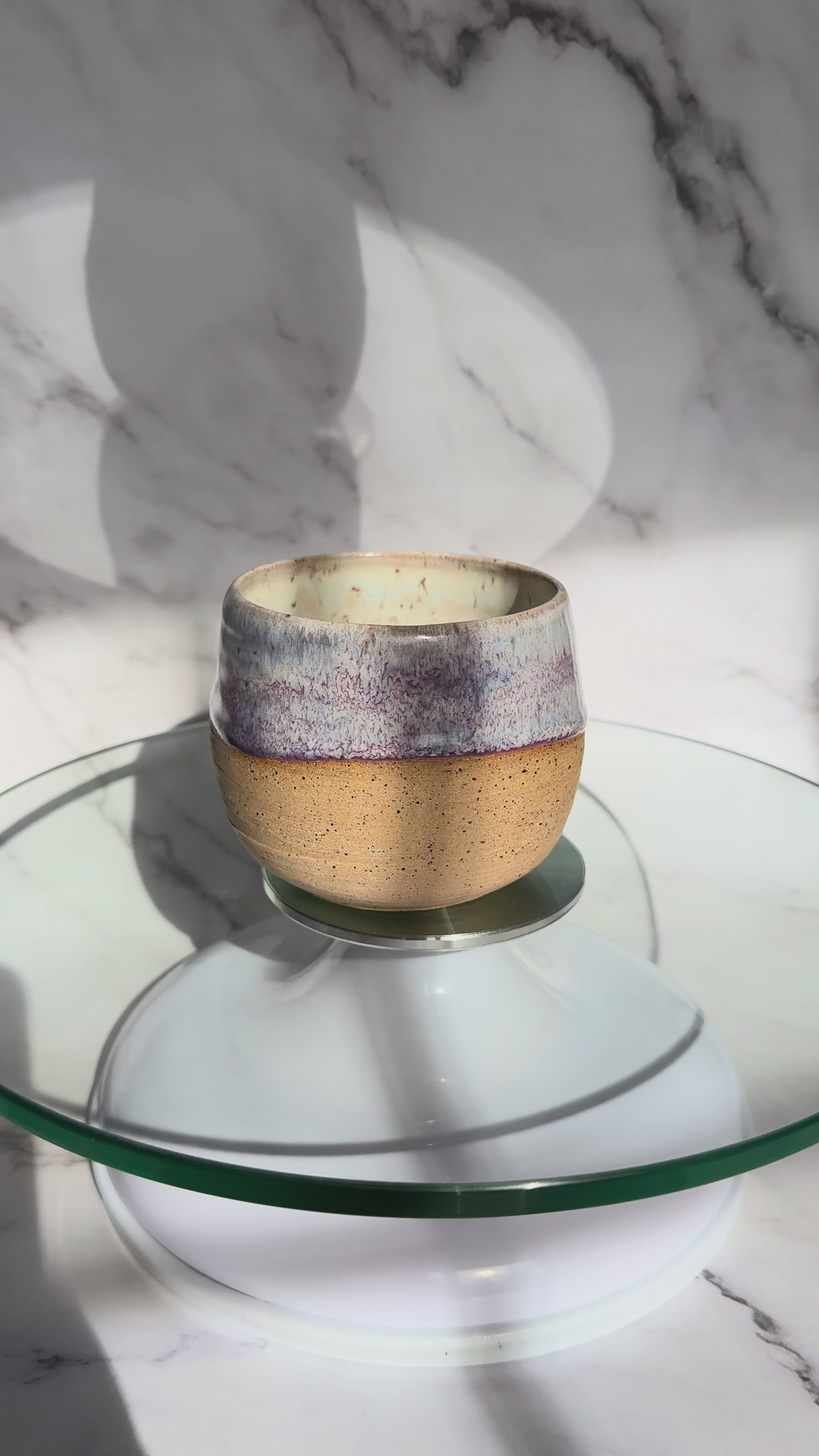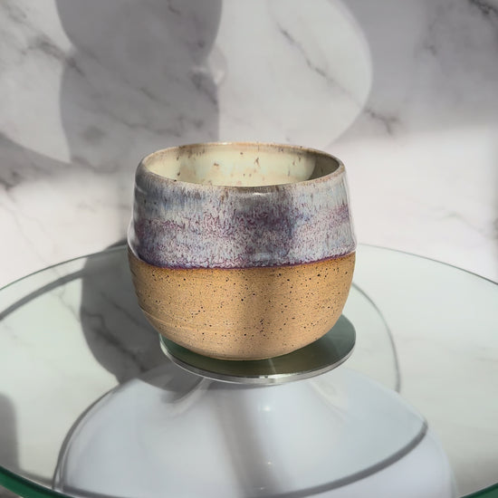 Crafted from speckled clay, it's the perfect size to serve as a petite bowl or oversized mug—whatever your mood calls for. The real magic? That dreamy interior glaze that swirls like melting ice sherbet, inviting you to peek inside every time you reach for it. Each piece is uniquely yours, with its own personality and charm.