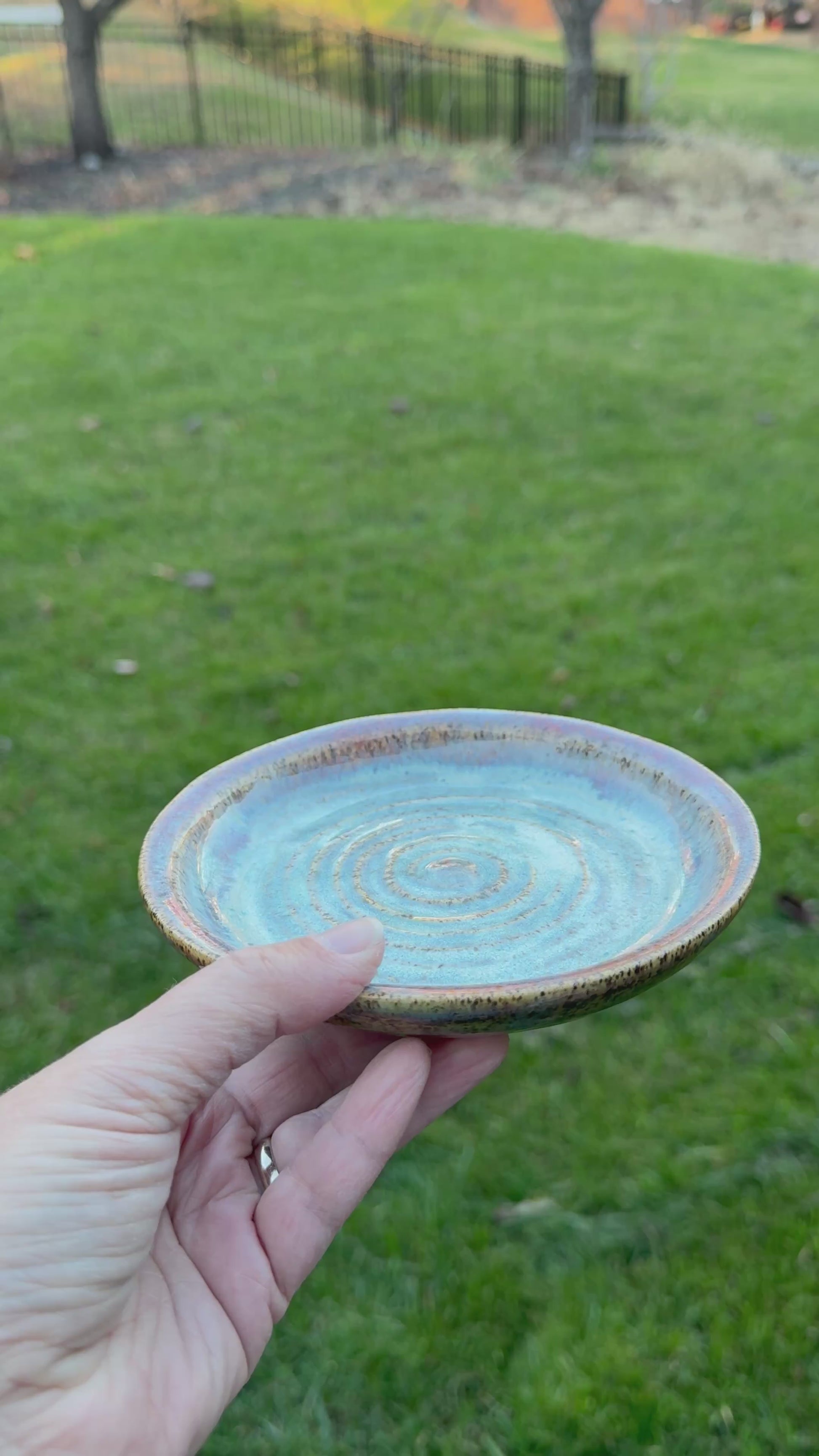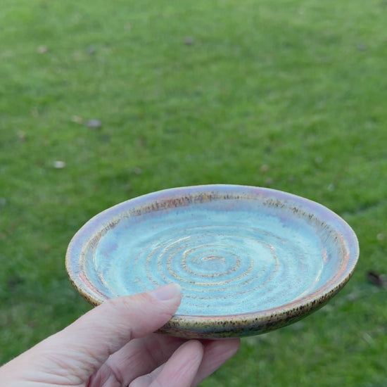 This Small Ocean Plate is a one-of-a-kind treasure, hand-crafted from speckled clay and glazed in mesmerizing ocean hues. Watch the swirling patterns dance across the surface—no two plates are ever alike. Perfect for serving snacks, displaying jewelry, or simply admiring as functional art. A playful reminder that the best things in life are beautifully imperfect.